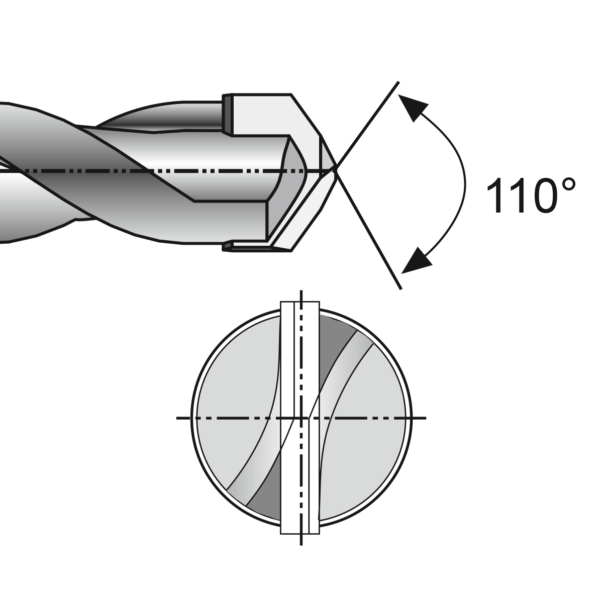 ISO 5468. Вольфрам-титановая пластина (остриё). Высокотемпературная пайка при 1.120°C. до 12 mm Ø с хвостовиком ROTASTOP. Соблюдение рекомендованного числа оборотов от 600 до 1200 об/мин, а также достаточное давление нажима являются непременным условием хорошей скорости сверления и длительного срока службы рабочего конца сверла при безударном сверлении твердых материалов. При работе с аккумуляторными дрелями это сверло работает заметно быстрее по сравнению с другими безударными свёрлами. Непревзойдённая форма хвостовика ROTASTOP гарантирует оптимальную передачу крутящего момента на 99 %, так как ROTASTOP благодаря своей специальной геометрической форме практически сам закрепляется в сверлильном патроне.