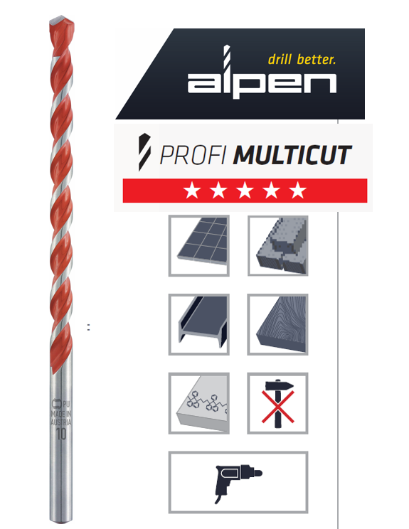 Сверла Alpen Profi Multicut , выпускаются исключительно в Австрии, что гарантирует полный контроль за качеством, самый современный уровень техники и максимальную точность.