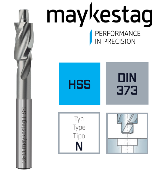 Высокопроизводительная цековка (зенкер 180°) MAYKESTAG HHS. Область применения: Для черных и цветных металлов синтетические материалы мягкие и твердые. Универсальное удаление заусенцев и всех видов растачивания. Отличная резка и уникальные характеристики гарантируют гладкую поверхность за счет неравномерно разделенными режущими кромками.
