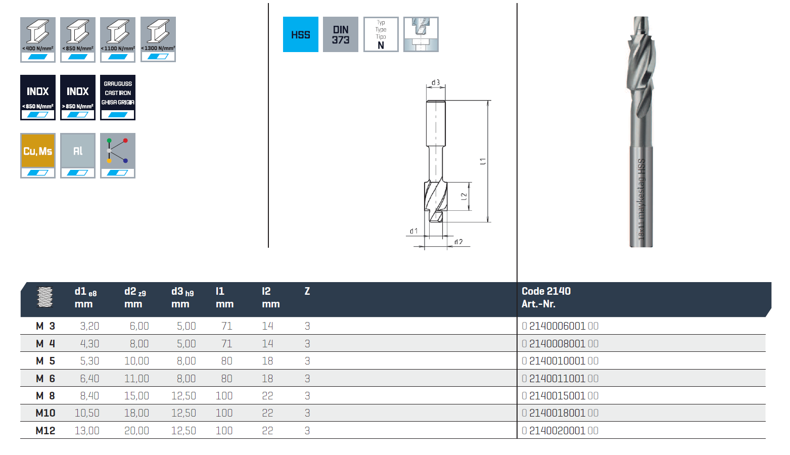 HSS counterbore, Z=3, DIN 373, type N, medial