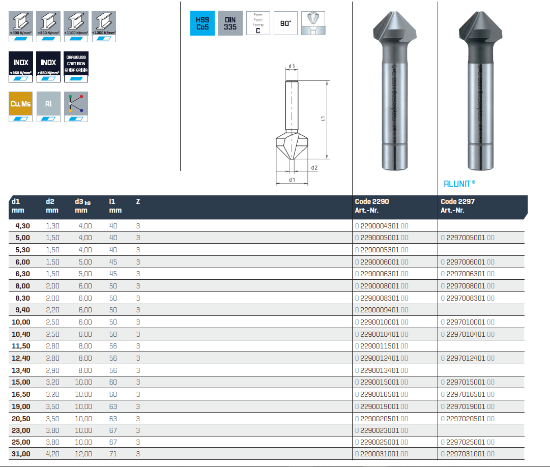 HSS-ECo countersink 90°, DIN 335, Shape C