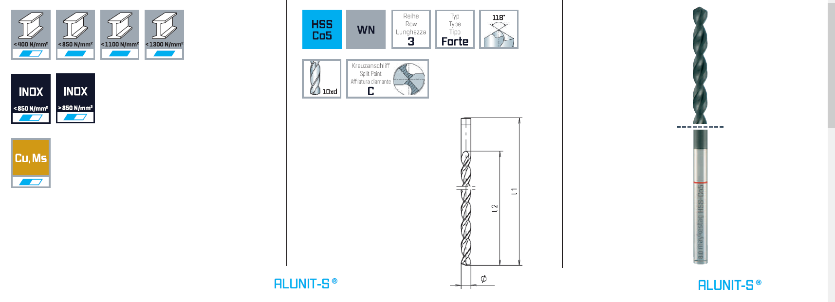 Сверла по металлу MAYKESTAG, DIN 1869 (очень длинная серия) из быстрорежущей стали, выпускаются исключительно в Австрии, что гарантирует полный контроль за качеством, самый современный уровень техники и максимальную точность.