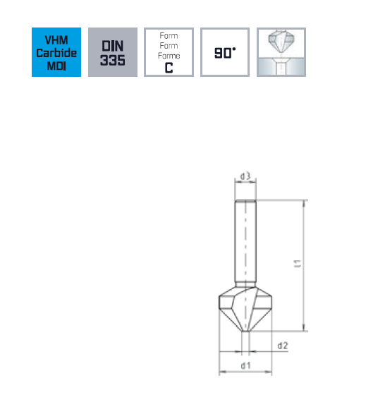 Зенкер твёрдосплавной MAYKESTAG (VHM) 90°, d 6.3 DIN 335, ALUNIT,