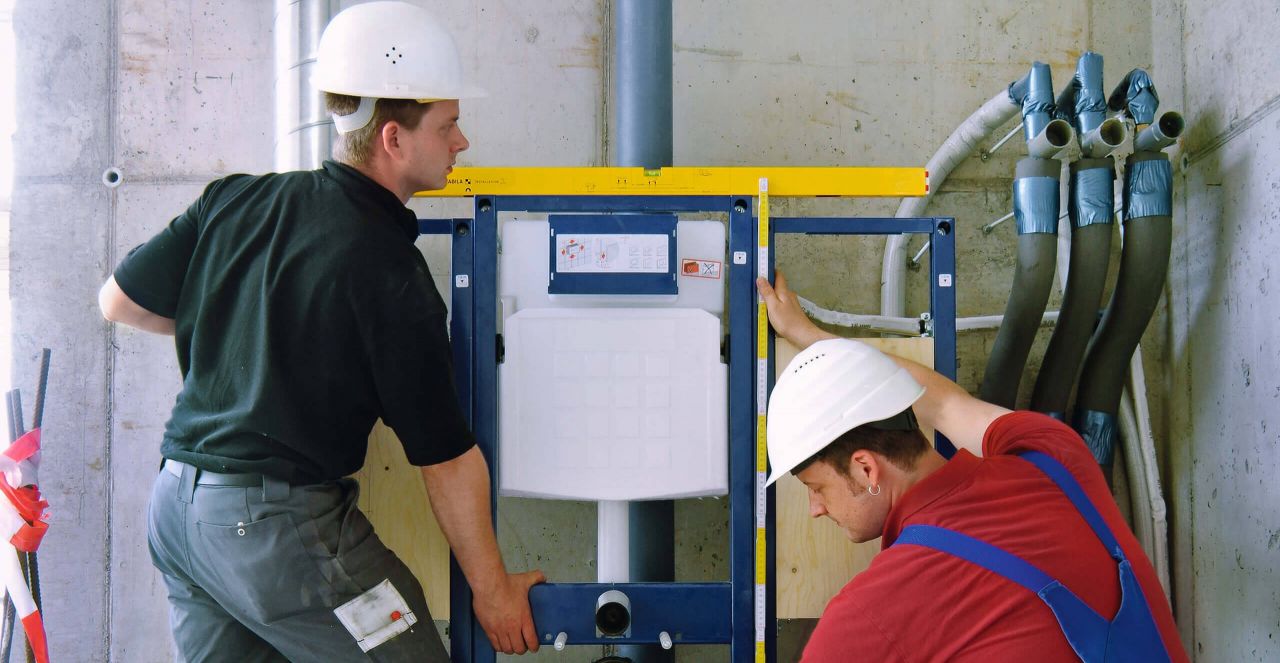 Прямоугольный алюминиевый профиль с нанесенными установочными размерами и насечками для переноса межцентрового расстояния сантехнического оборудования. Монтажные отметки можно перенести прямо с профиля для выравнивания, маркировки и сверления.
