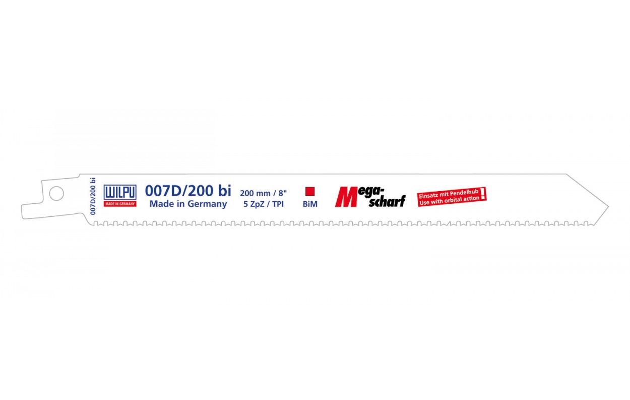 Изготовлено из биметалла (гибкий и прочный материал, полученный методом лазерной сварки из легированной стали в спинке полотна и высокопроизводительной быстрорежущей стали в зубчатой части).
