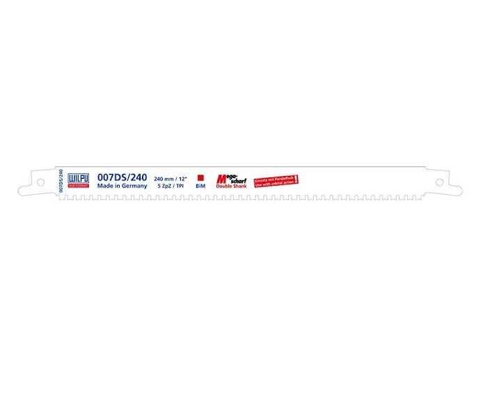 Изготовлено из биметалла (гибкий и прочный материал, полученный методом лазерной сварки из легированной стали в спинке полотна и высокопроизводительной быстрорежущей стали в зубчатой части).